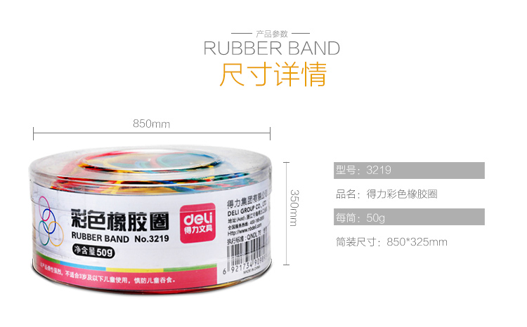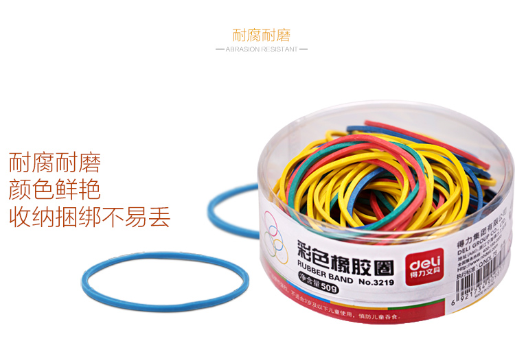 得力橡膠圈 3219 彩色彈力50g/筒 單位:筒