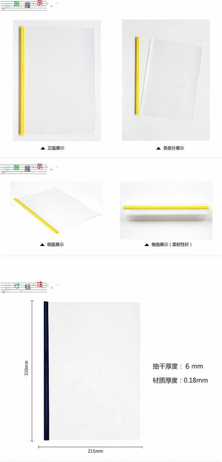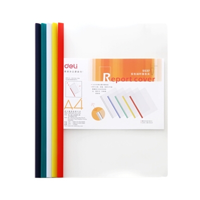 得力(deli)5537 透明抽桿夾/文件夾 文件封面 混色 五只裝