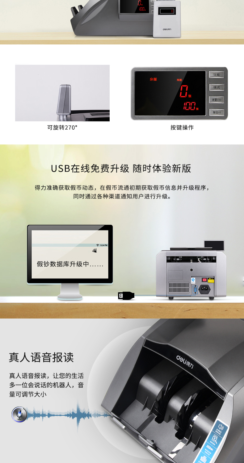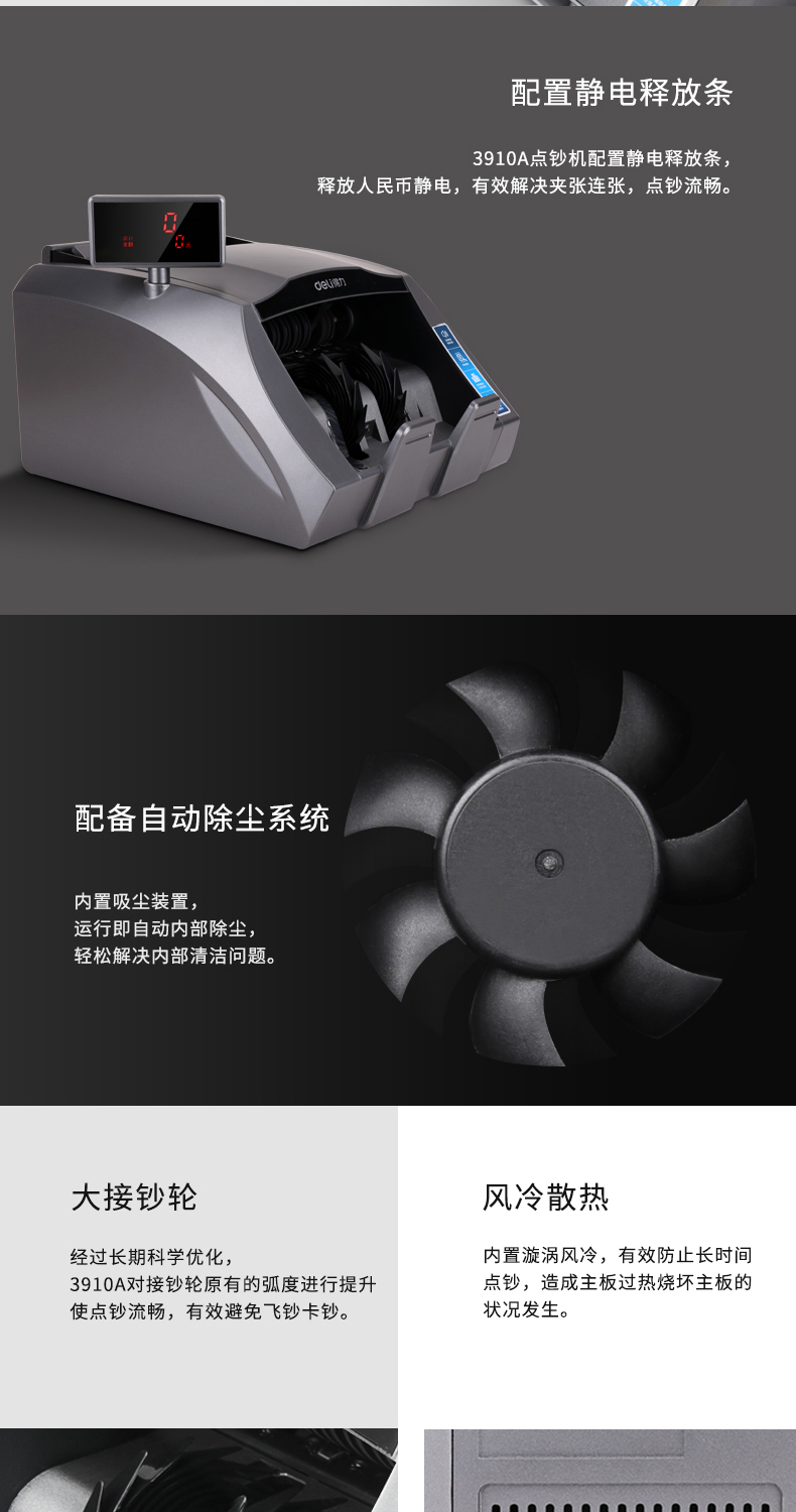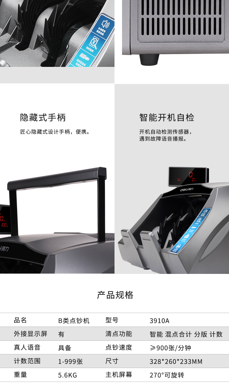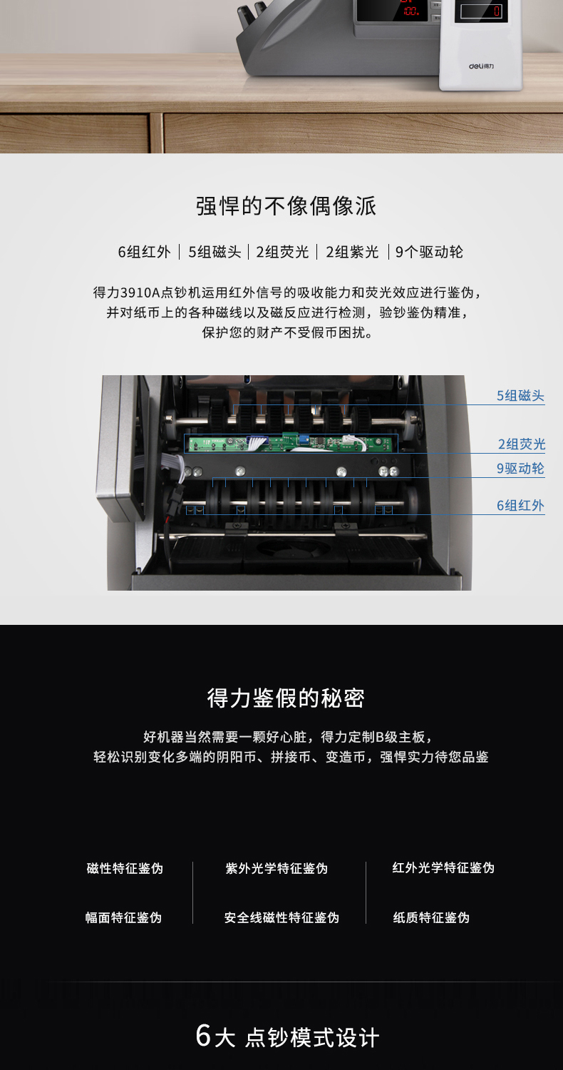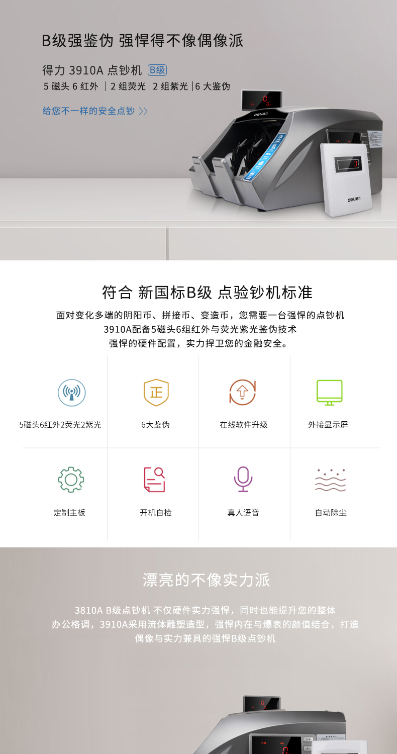 得力驗鈔機 3910A 銀行專用點鈔機 國標(biāo)B類點驗鈔機 單位:臺