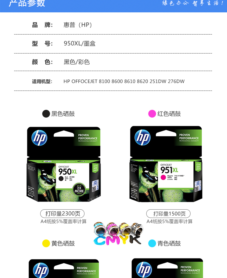 惠普墨盒 CN045AA 黑色墨盒 951XL 適用: 8600plus 8100 單位:支