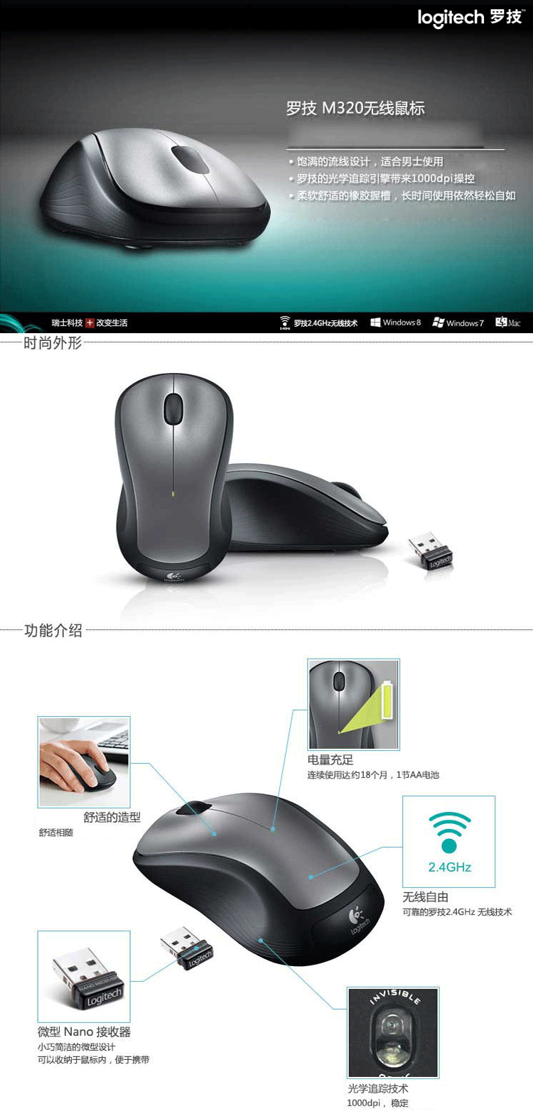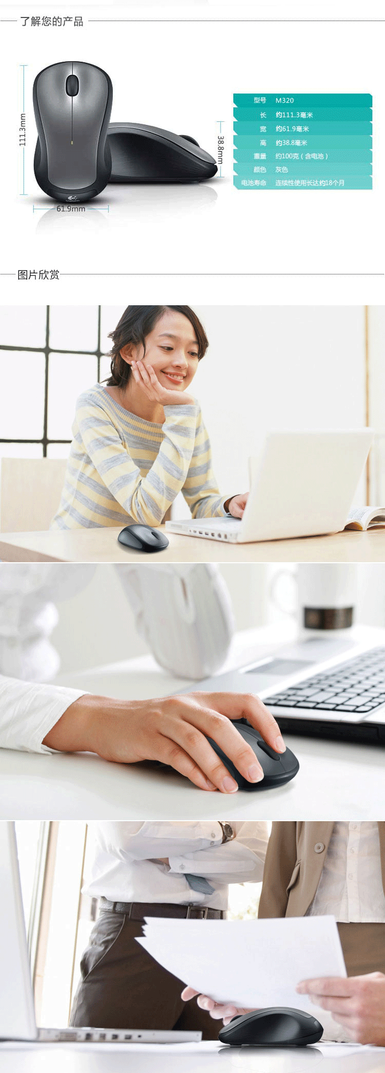 羅技鼠標(biāo) M320 無線鼠標(biāo) 灰色 單位:個