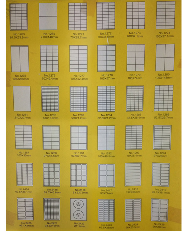 龍誠(chéng)海A4標(biāo)準(zhǔn)不干膠 36種型號(hào) A4切割不干膠貼標(biāo)簽打印紙 單位:包