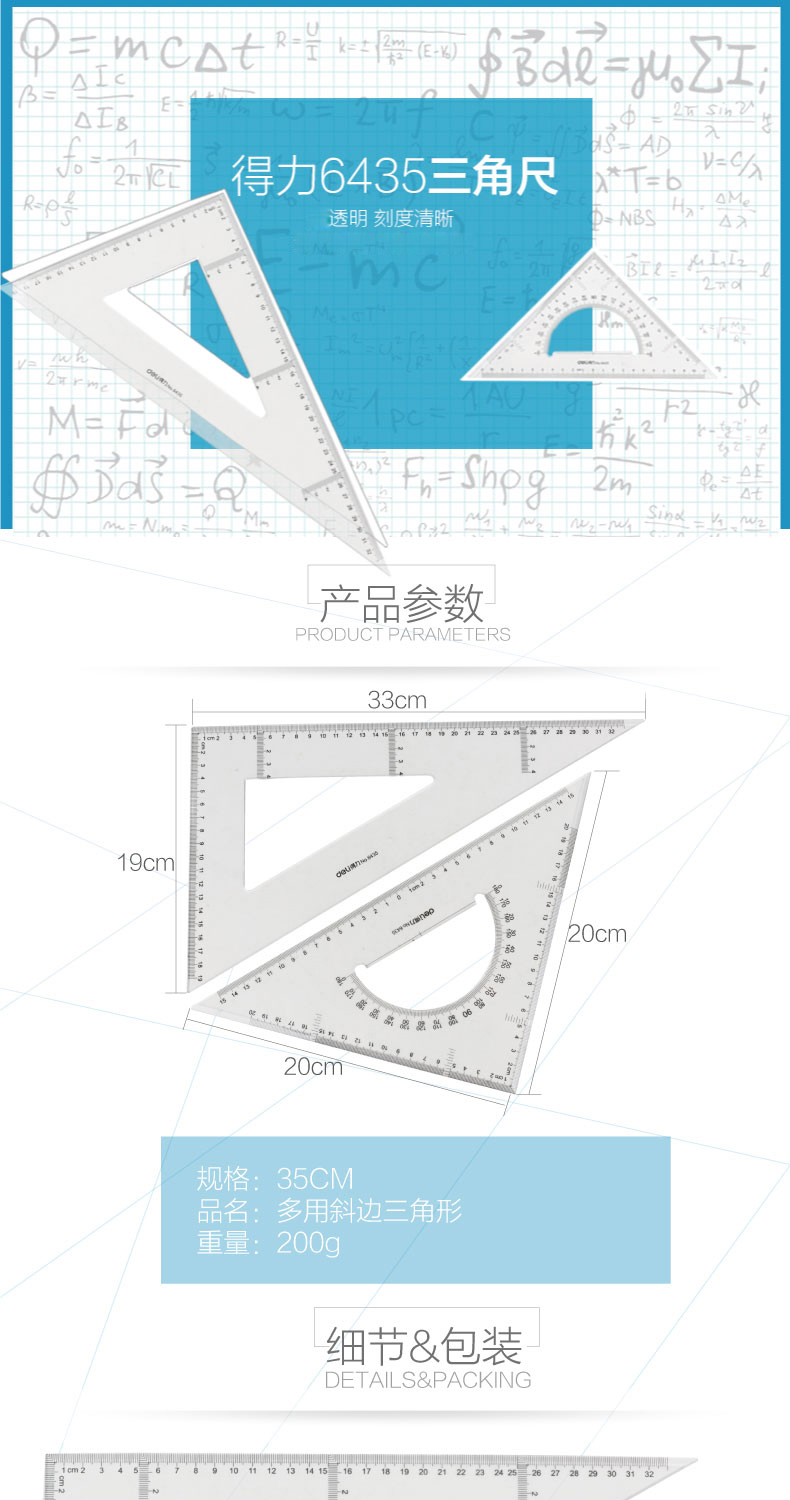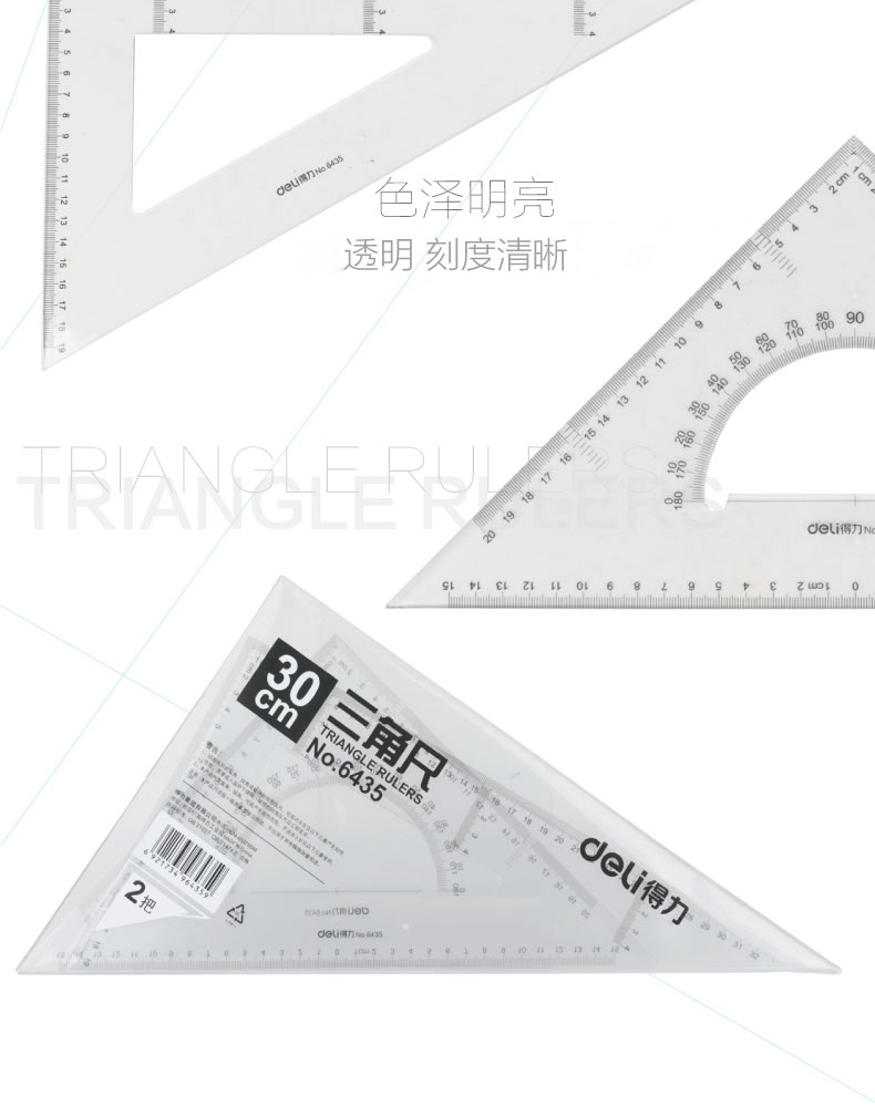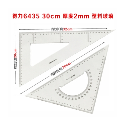 得力尺子 6435 教學塑料三角尺 透明三角板尺子套裝 30cm 6435 單位:套