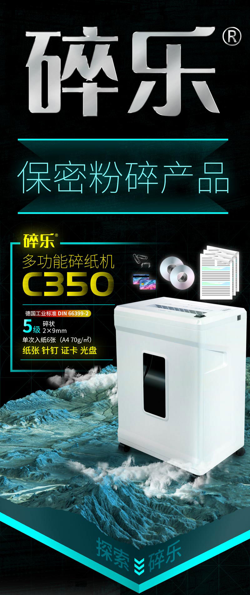 碎樂碎紙機(jī) C350 德國標(biāo)準(zhǔn)5級(jí)保密 小型辦公碎紙機(jī) 多功能碎紙機(jī) 單位:臺(tái)