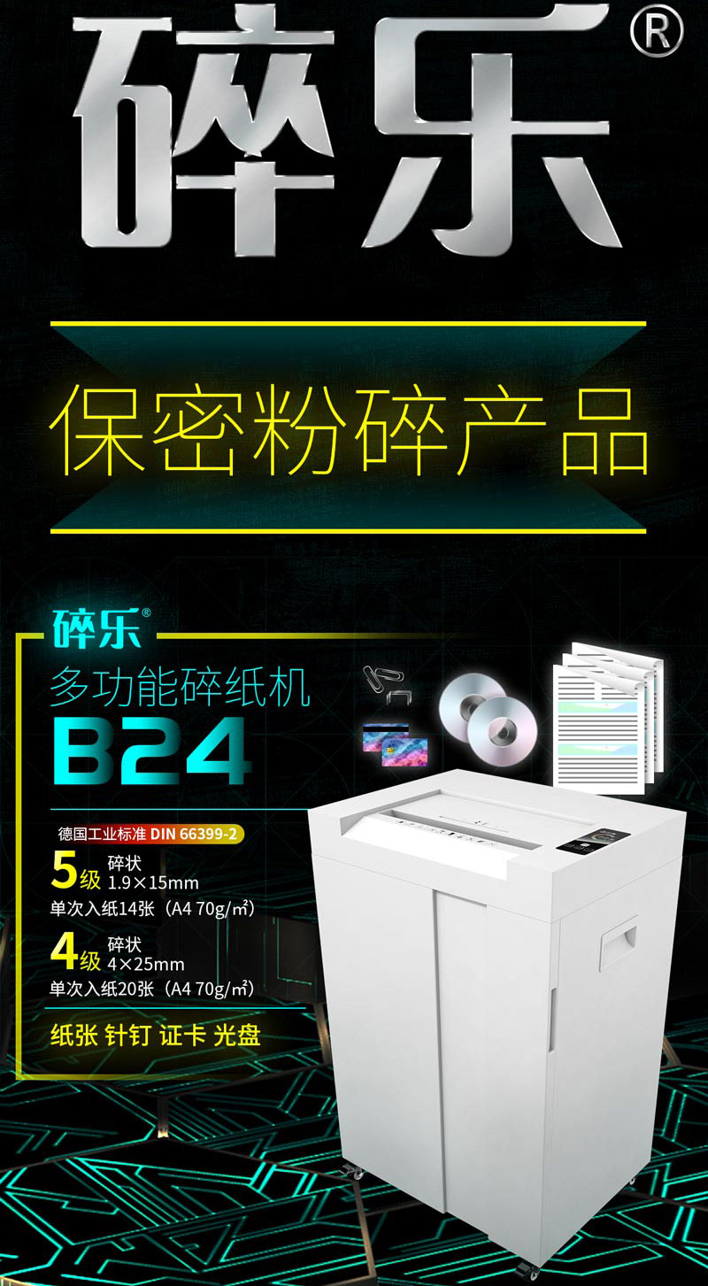 碎樂碎紙機 B24 德[DIN 66399]4級保密 辦公碎紙機 多功能碎紙機 單位:臺