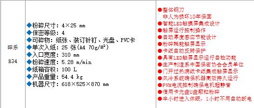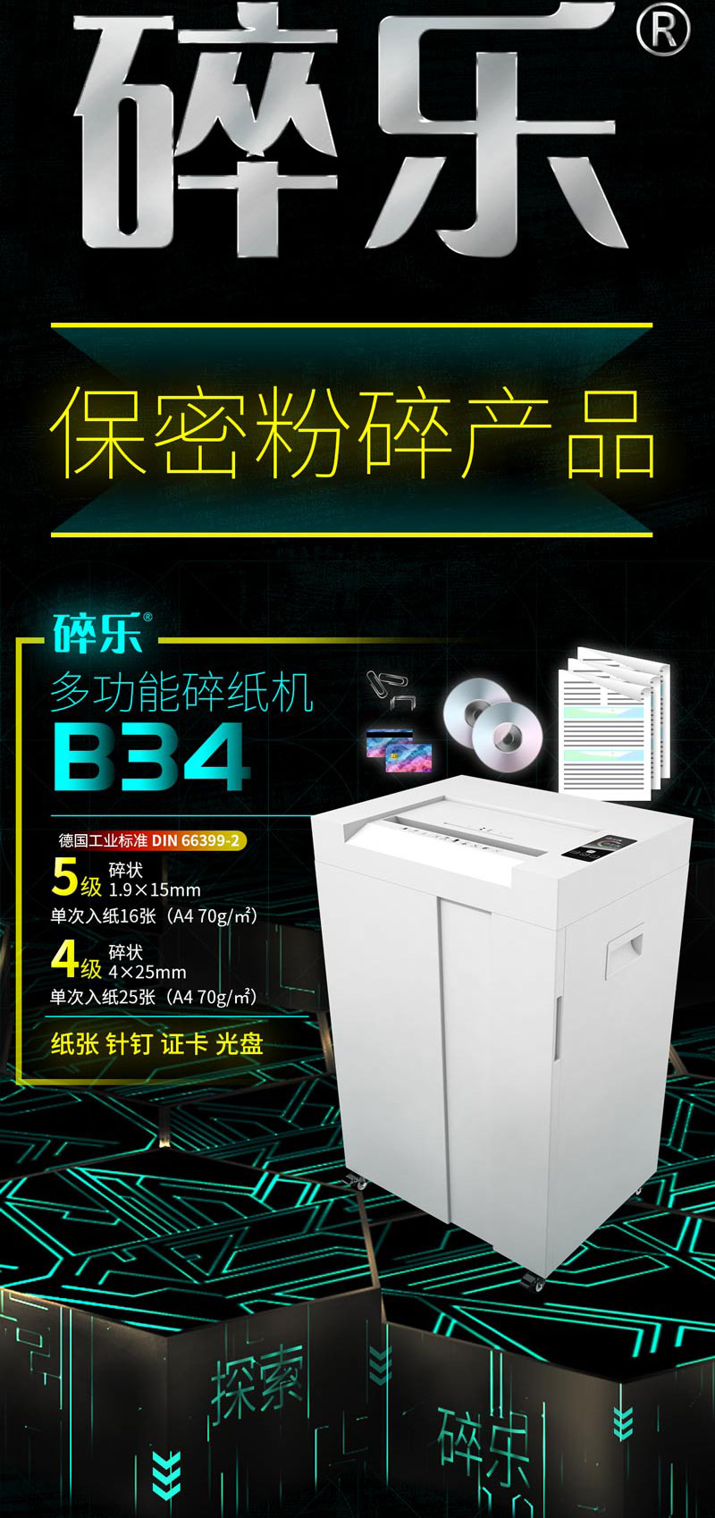 碎樂(lè)碎紙機(jī) B34 德[DIN 66399]4級(jí)保密 辦公碎紙機(jī) 多功能碎紙機(jī) 單位:臺(tái)