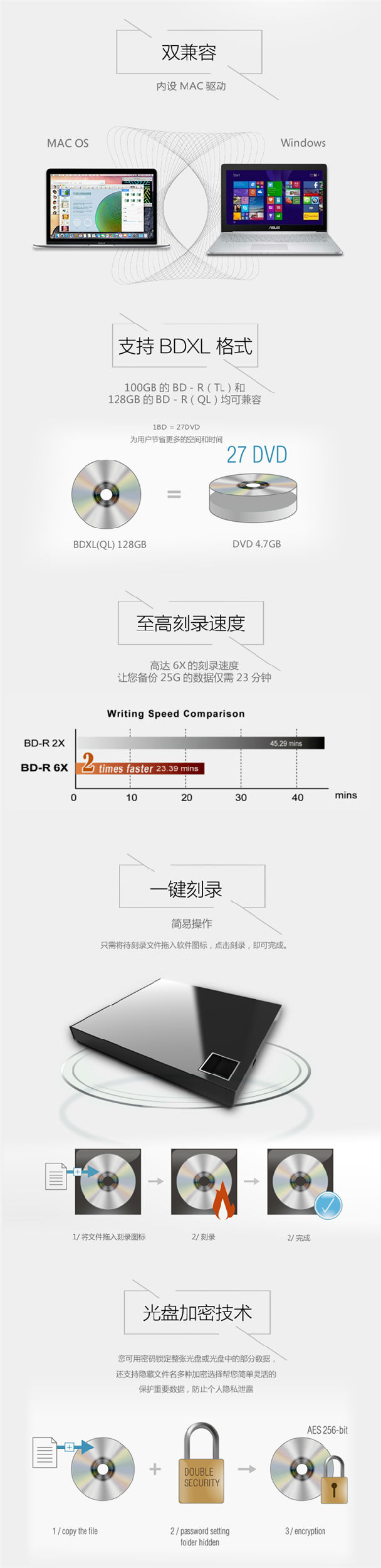 華碩外置光驅(qū) SBW-06D2X-U 黑色(兼容蘋果系統(tǒng)) 單位:個