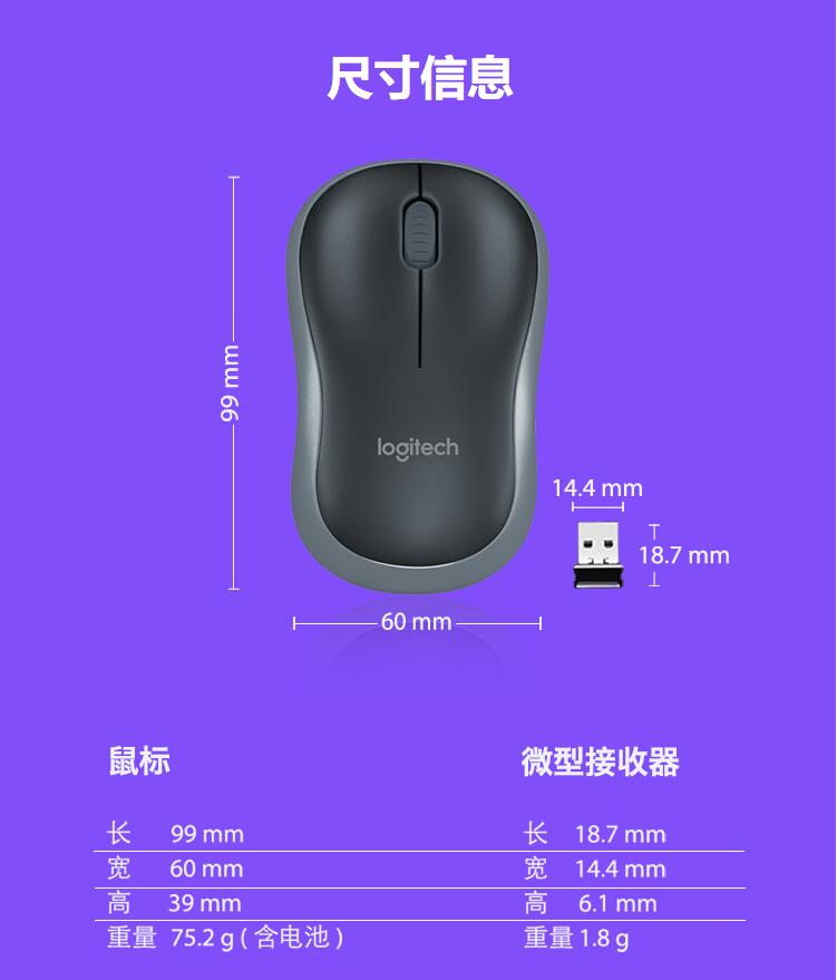 羅技鼠標 M185(M186)無線鼠標 黑色灰邊 單位:個