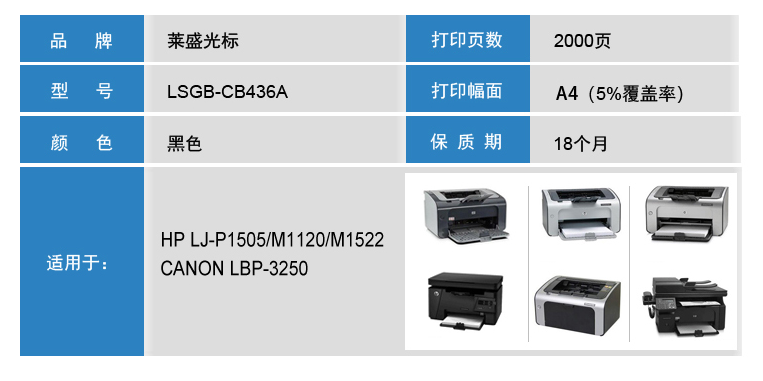 萊盛光標(biāo) LSGB-CB436A 黑色粉盒 適用:HP LJ-P1505/M1120/M1522 單位:支