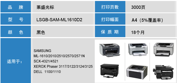 萊盛光標(biāo) LSGB-SAM-ML1610D2 黑色硒鼓 適用SAMSUNG ML-1610/2010/2510/2570