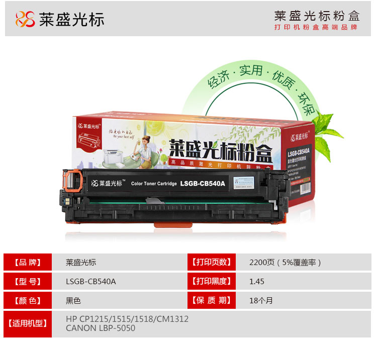 萊盛光標(biāo) LSGB-CB540A 黑色硒鼓 適用:HP CP1215/1515/1518/CM1312 單位:支