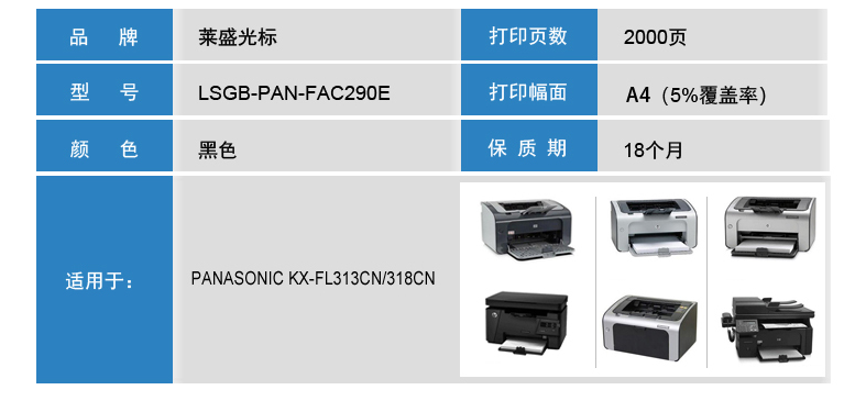 萊盛光標 LSGB-PAN-FAC290E 黑色粉盒 適用:PANASONIC KX-FL313CN/318CN 單位:支
