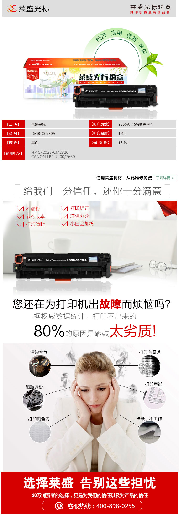 萊盛光標(biāo) LSGB-CC530A 黑色粉盒 適用:HP CP2025/CM2320 CANON LBP-7200/7660 單位:支