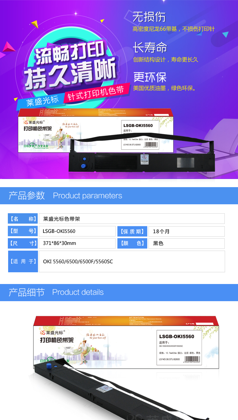 萊盛光標(biāo) LSGB-OKI 5560 色帶架 黑色 適用:OKI 5560/6500/6500F/5560SC 單位:支