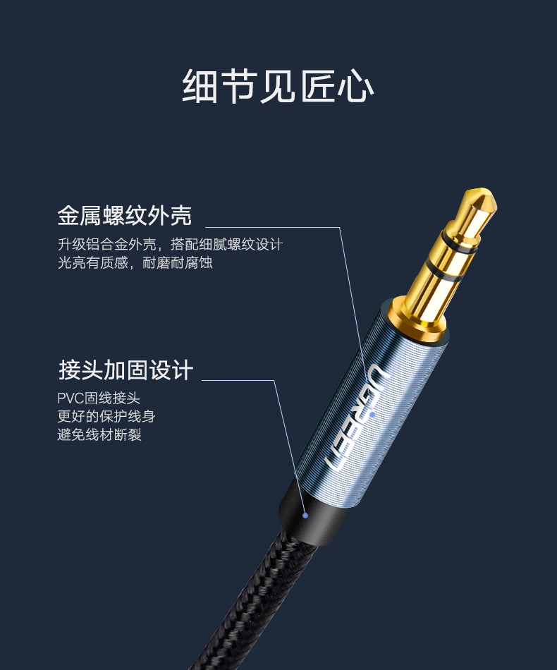 綠聯(lián) AV112 車載AUX音頻線3.5mm公對公車載耳機(jī)連接線 直對直 2米 藍(lán)色 單位:根