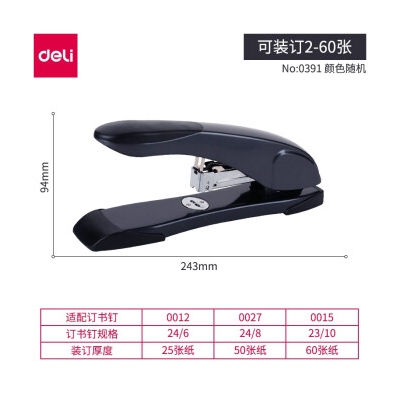 得力訂書機(jī) 0391 訂書機(jī)中型裝訂辦公重型厚層釘書機(jī) 60頁訂書機(jī)
