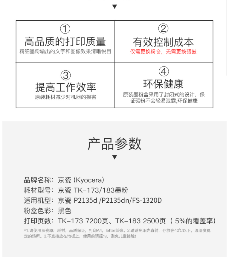 京瓷墨粉 TK-183 黑色墨粉 適用:FS-1320D/1320DN/P2135DN 單位:支