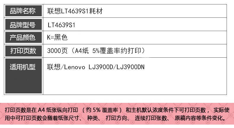 聯想粉盒 LT4639S1 墨盒 適用LJ3900D LJ3900DN 打印機 單位:支