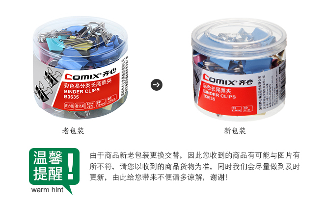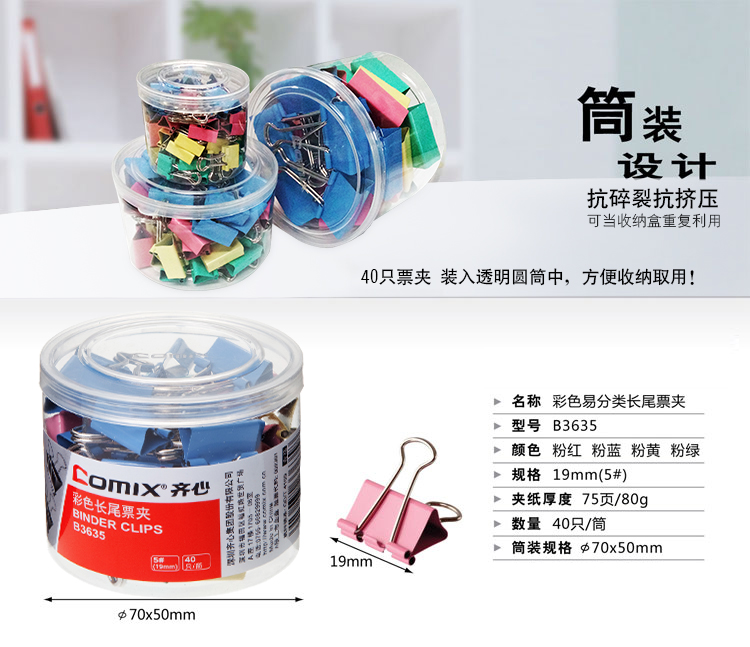 齊心(Comix) B3635 彩色長尾夾 單位:筒