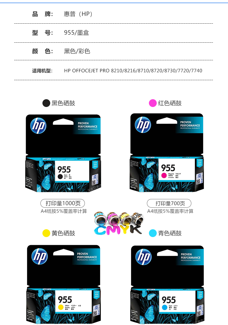 惠普墨盒 955 黑色墨盒 適用:HP 8210 8710 8720 8730 單位:支