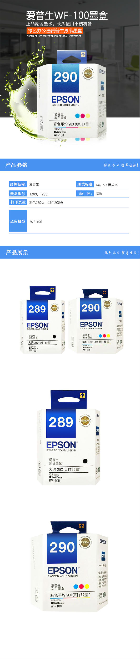 愛普生墨盒 T289 黑色墨盒 適用WF-100機型 單位:支