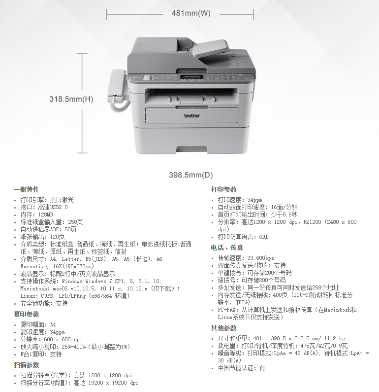 兄弟多功能一體機 MFC-B7700D 黑白激光 單位:臺