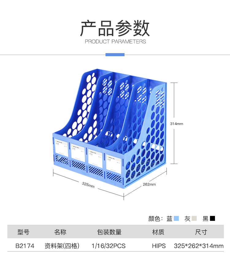 齊心資料架 B2174 四聯(lián)資料架文件收納欄 黑色 單位:個