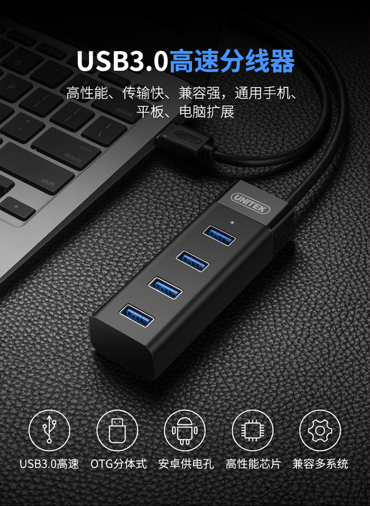 優(yōu)越者(UNITEK)分線器 高速擴(kuò)展一拖四多接口 USB3.0 Y-3098BBK 1.2米 單個(gè)裝