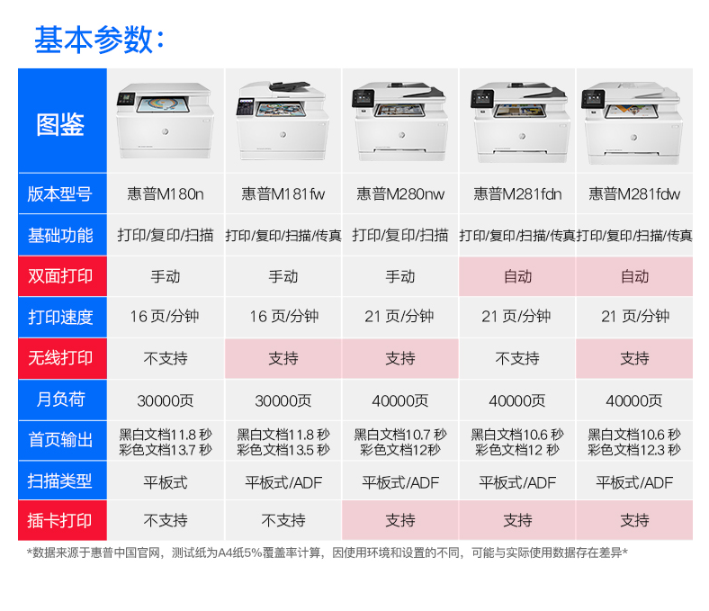 惠普多功能一體機 M280nw 彩色激光 單位:臺