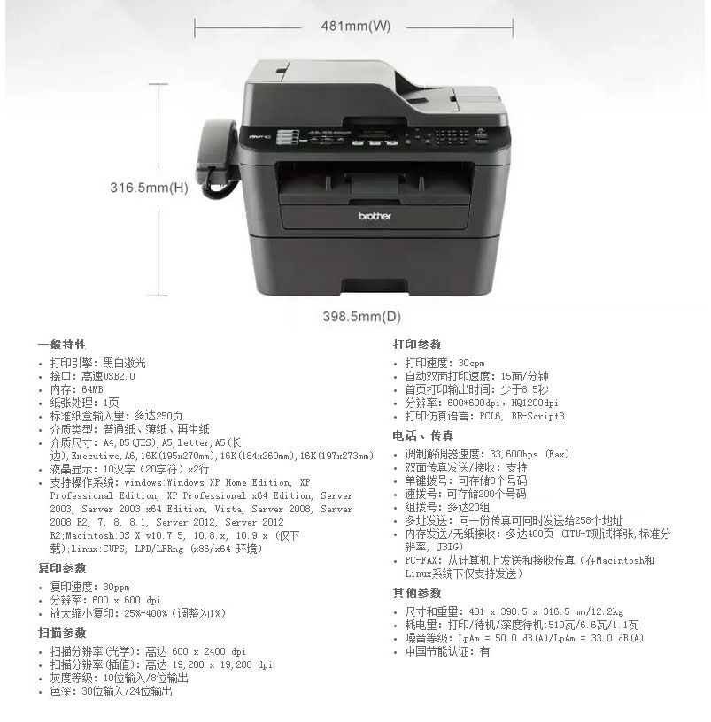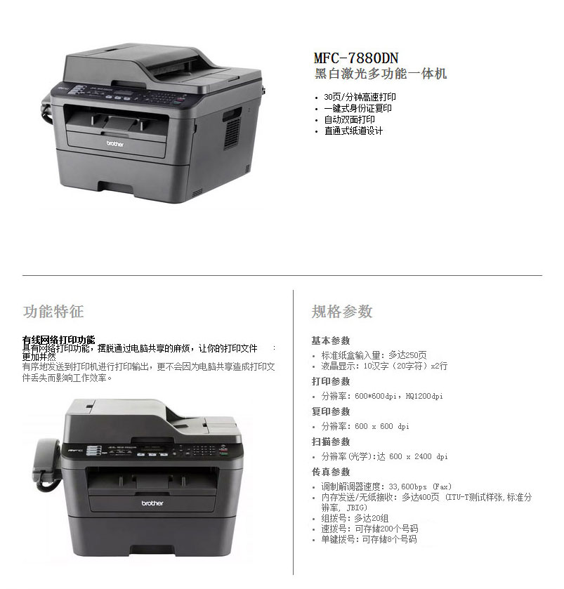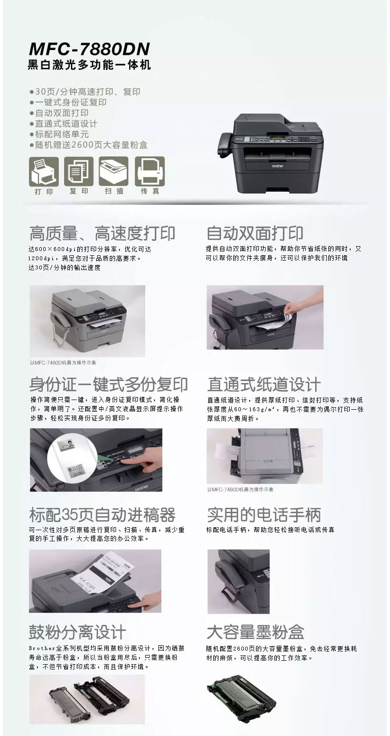 兄弟傳真機(jī) MFC-7880DN激光打印復(fù)印掃描傳真機(jī)一體機(jī) 單位:臺(tái)