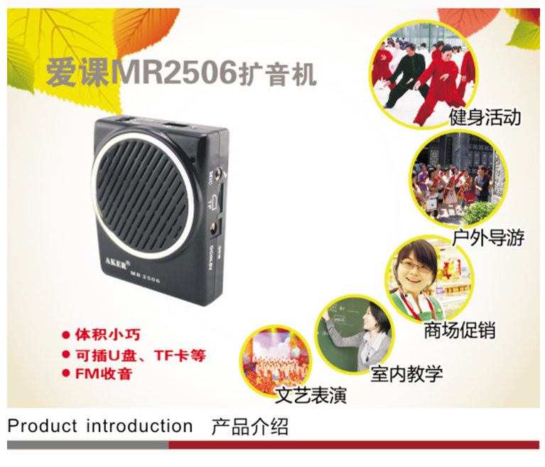 愛課(AKER) MR2506 音箱 音響教學便攜紅外遙控導游擴音器