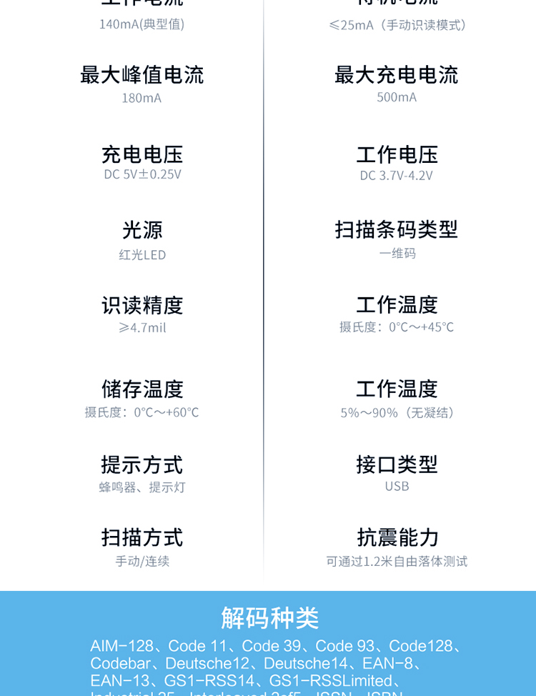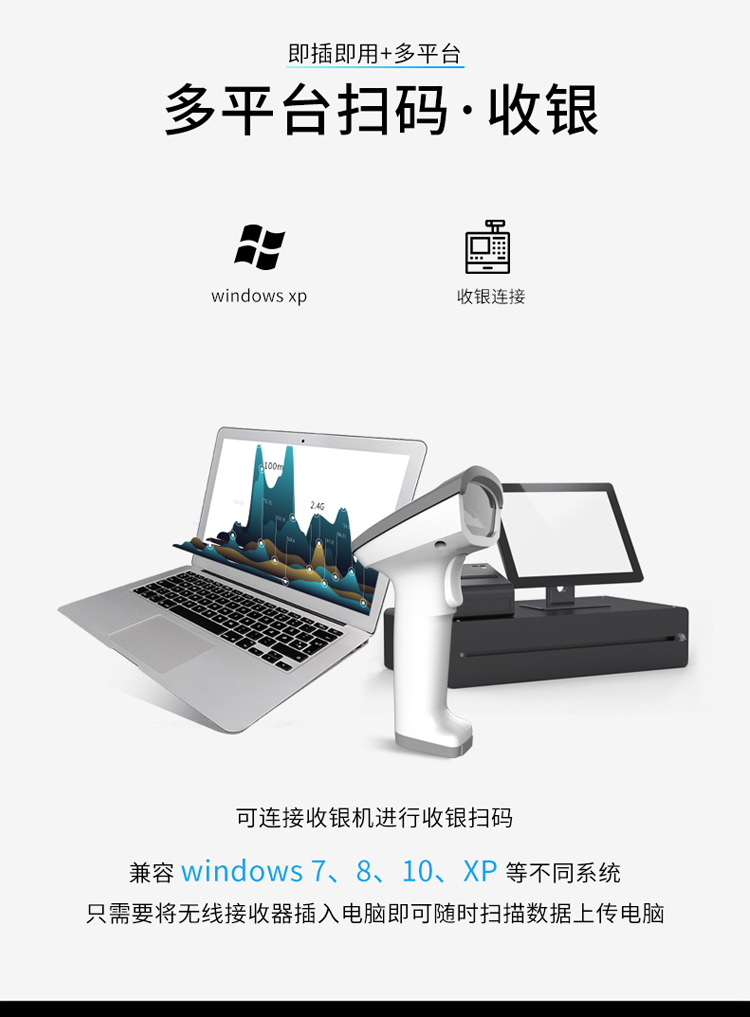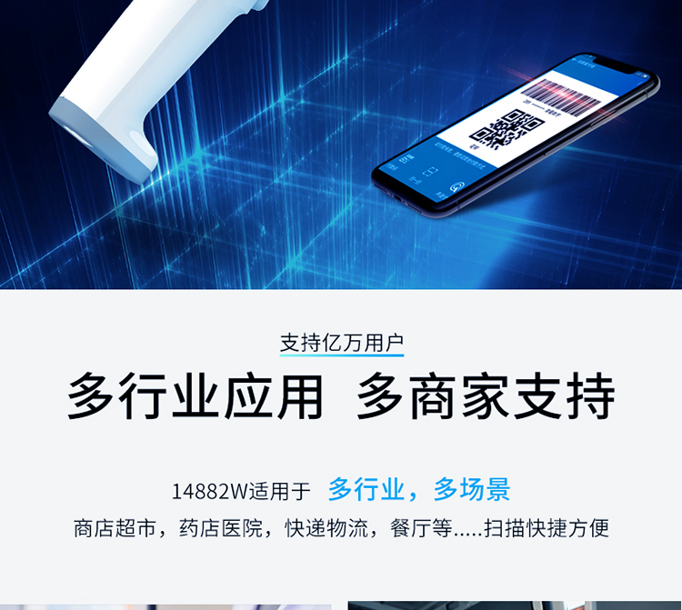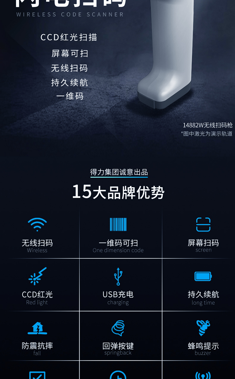 得力掃描槍 14882W白 無線掃描槍收銀手機支付掃碼器 單位:個