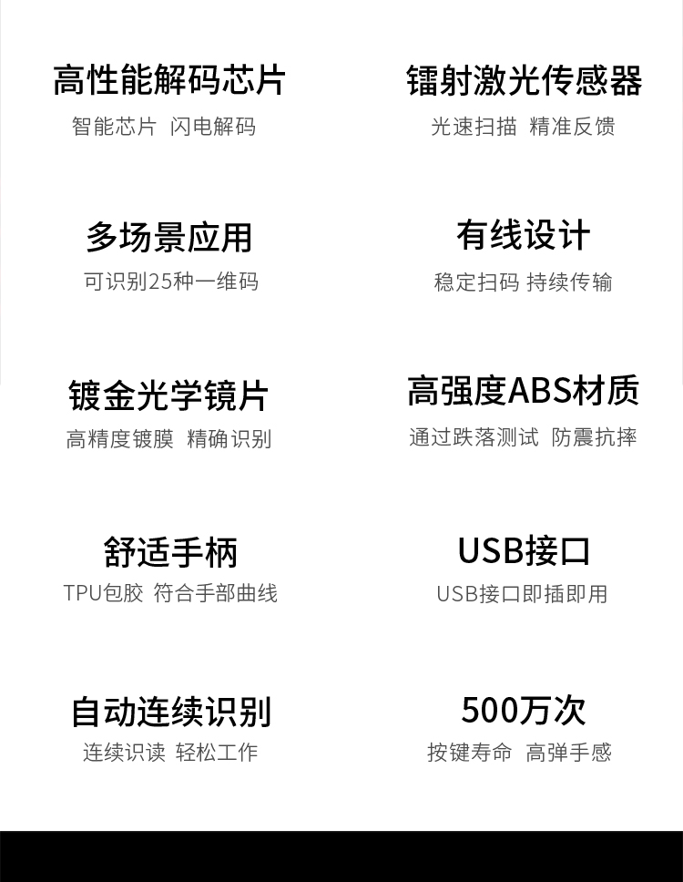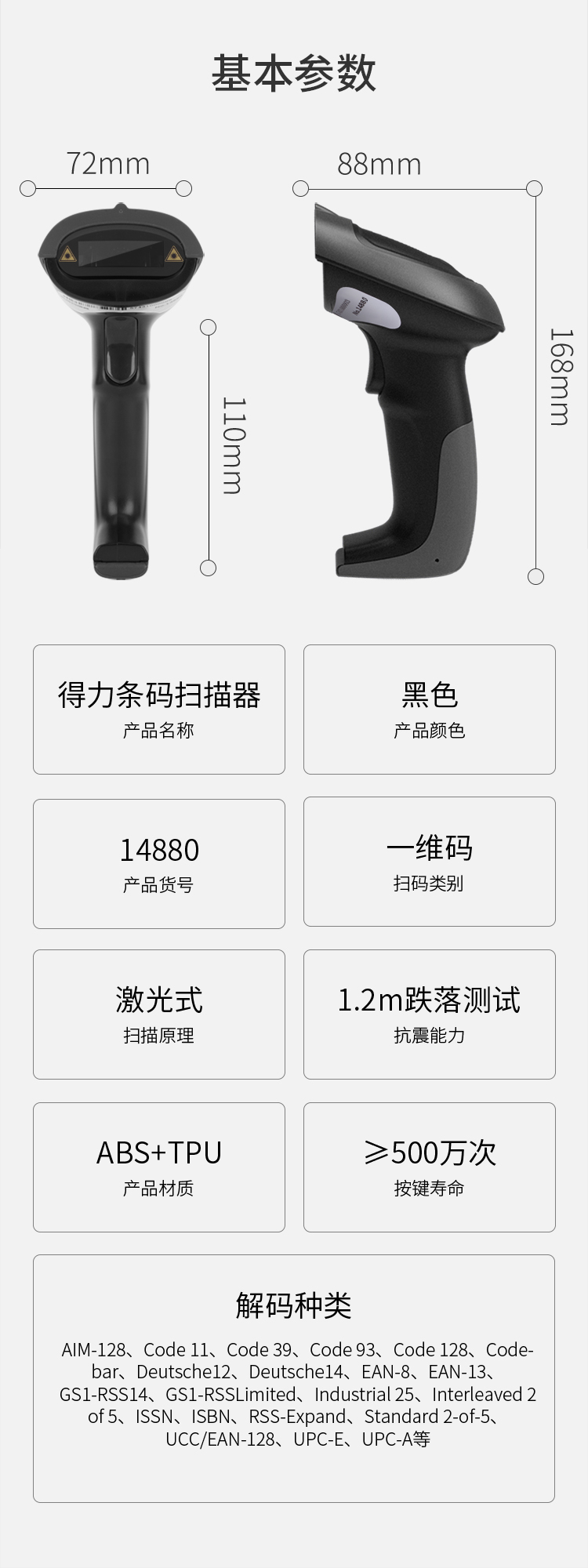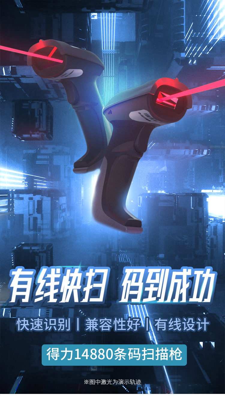 得力掃描槍 14880黑 一維碼掃描槍掃碼槍商品條碼槍 單位:個