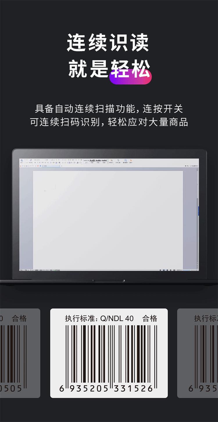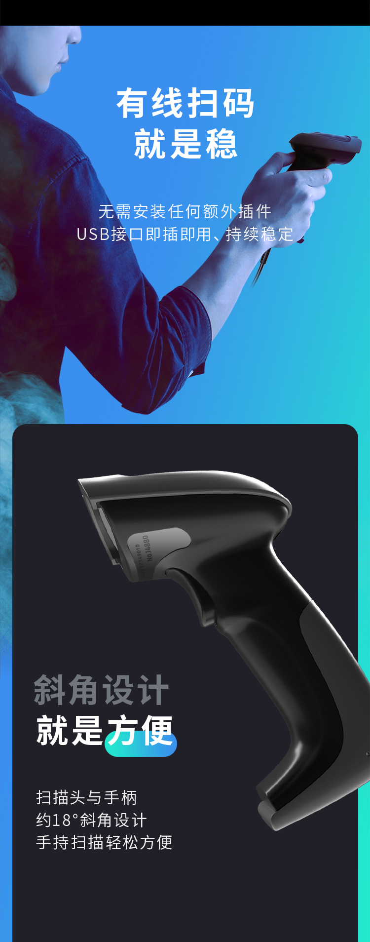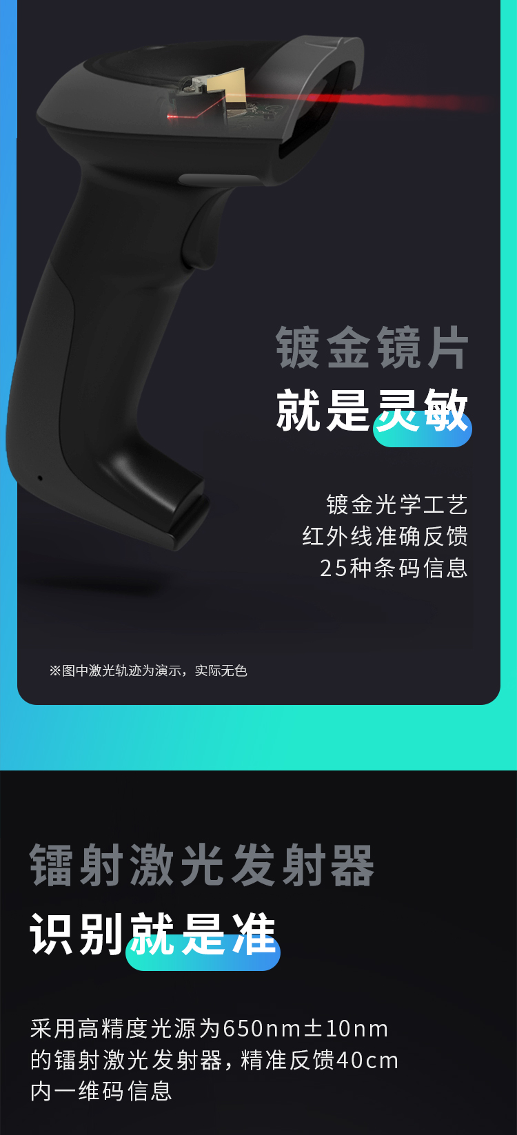得力掃描槍 14880黑 一維碼掃描槍掃碼槍商品條碼槍 單位:個