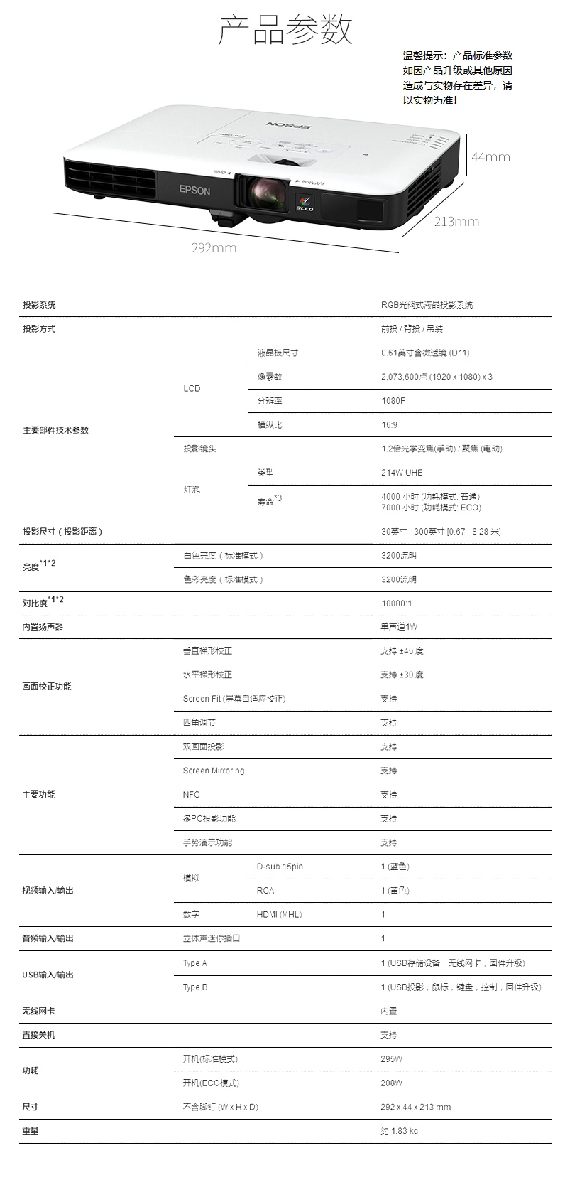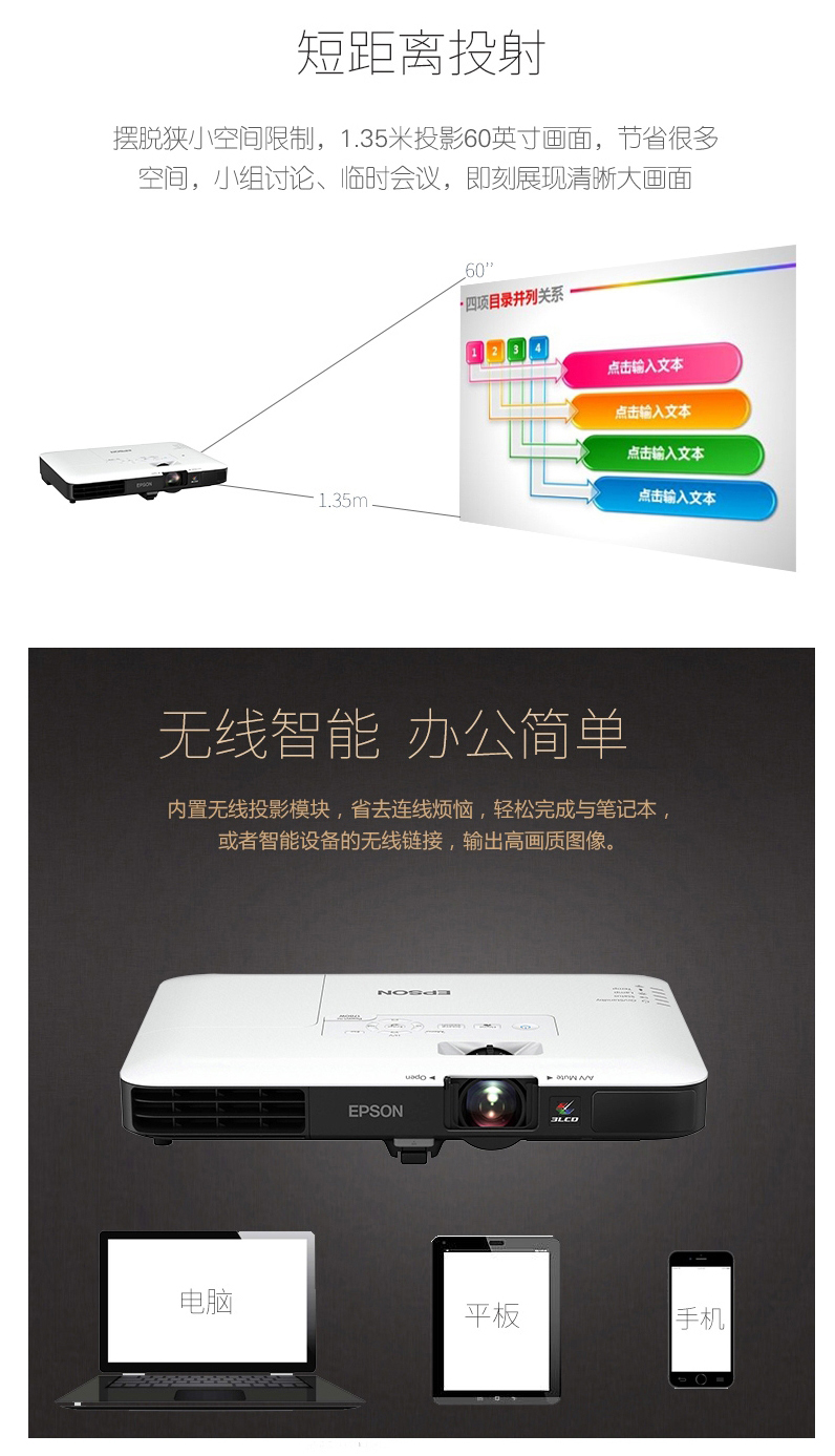 愛普生投影機 CB-1795F 商務(wù)會議教育便攜1080p高清 無線投影儀單位:臺