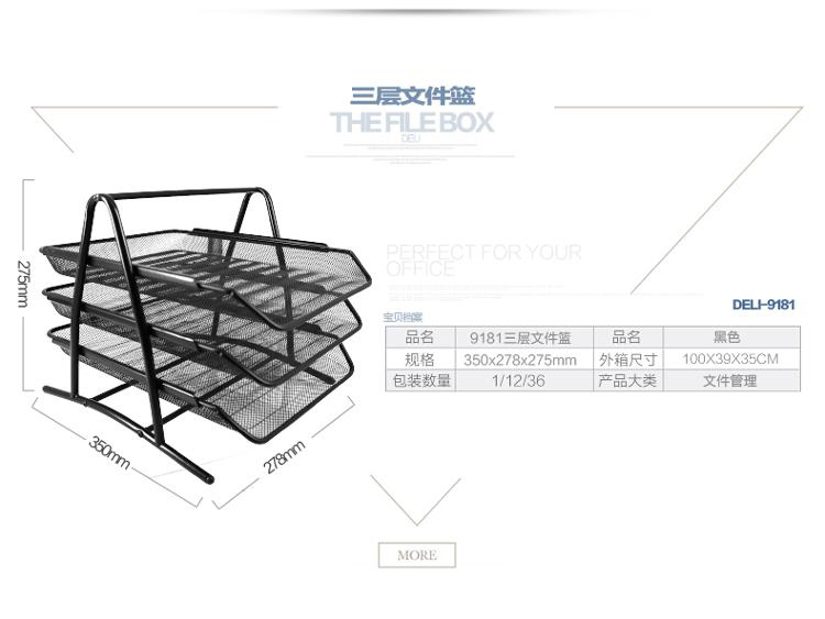 商品名稱:得力9181 高品質(zhì)商務(wù)三層金屬文件盤(座)黑色 1只裝