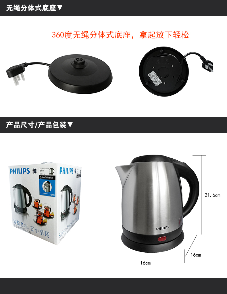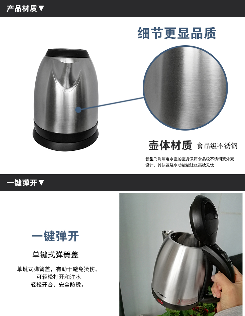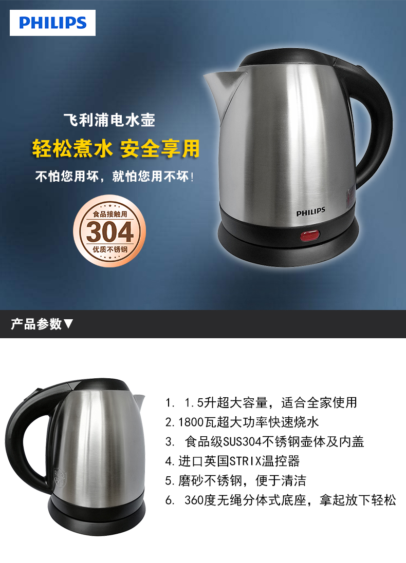 飛利浦熱水壺 HD9307 不銹鋼防干燒電水壺 1.2L 單位:個