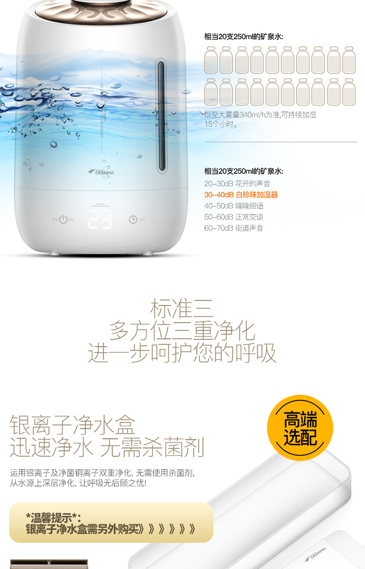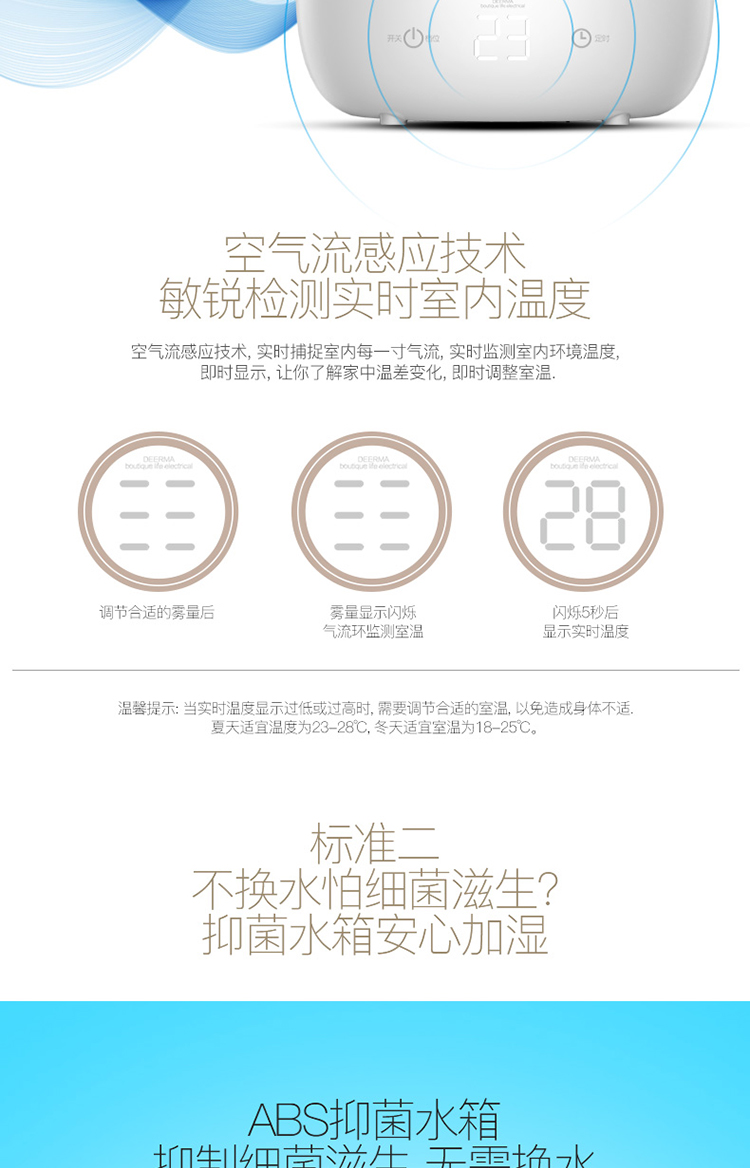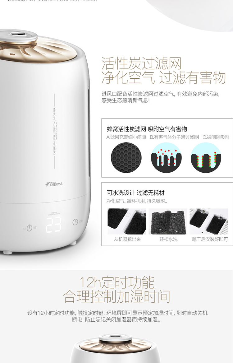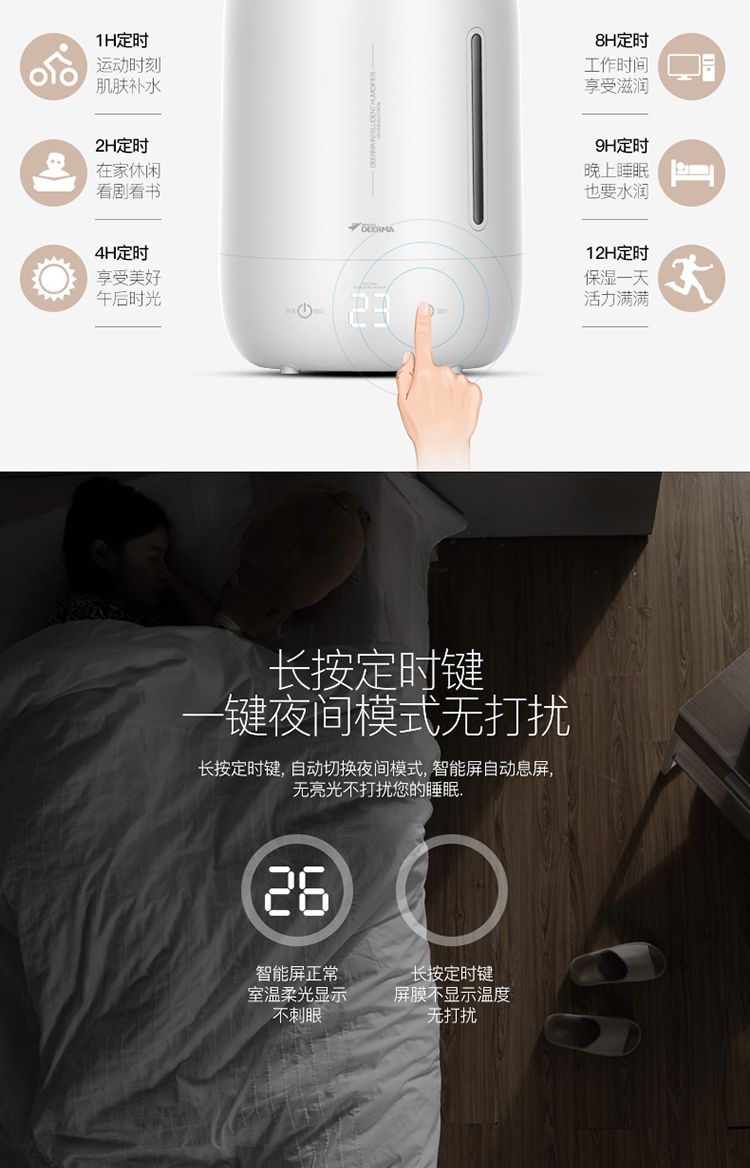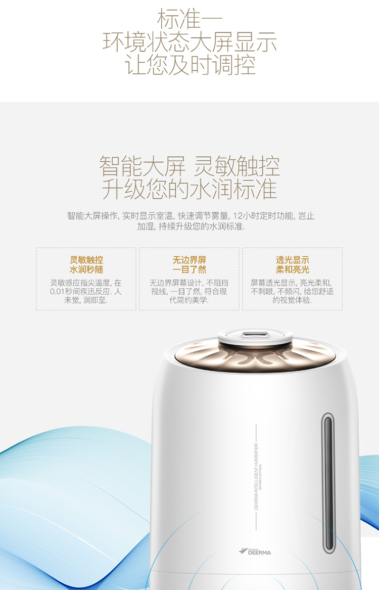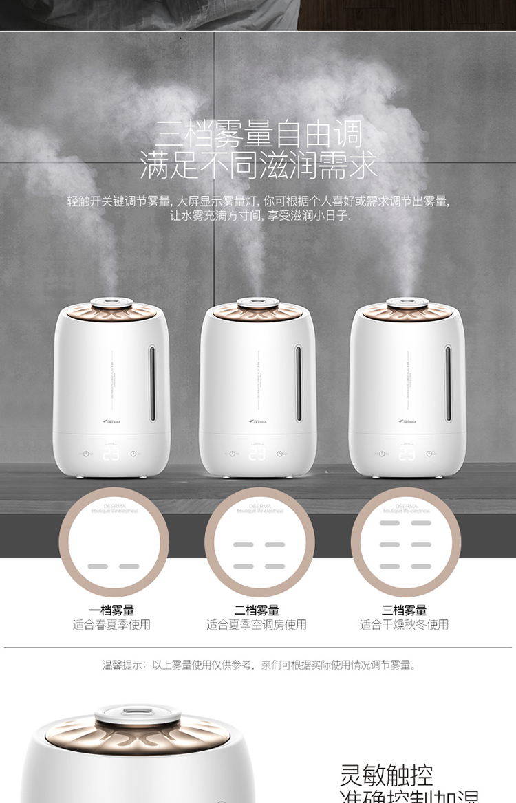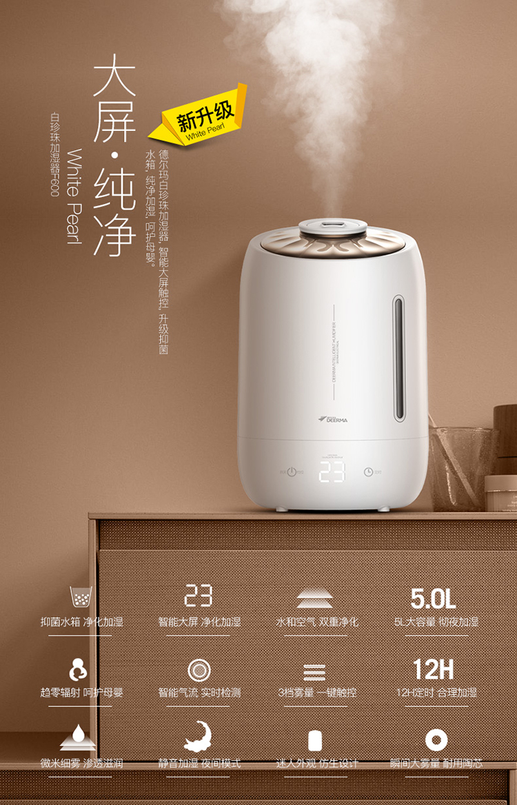 5L大容量 觸控感溫 家用靜音迷你辦公室臥室香薰加濕 DEM-F600(珍珠白)
