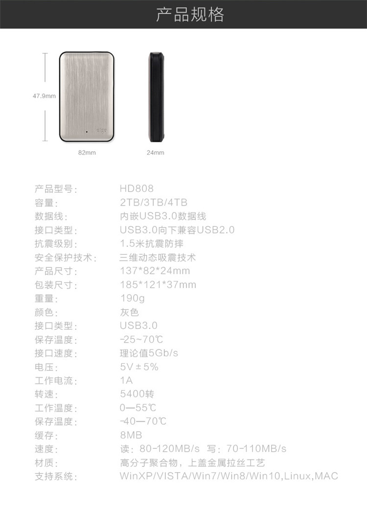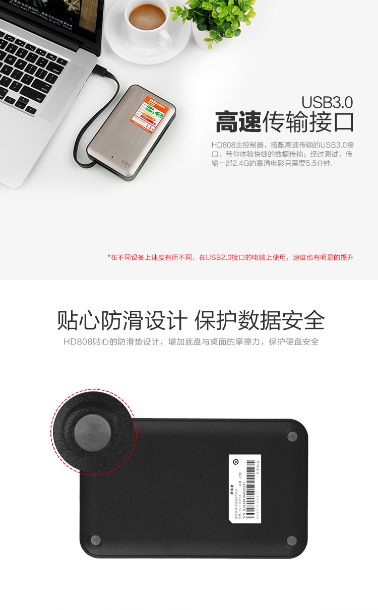USB3.0高速 2.5英寸 抗震防摔 HD808-2T 標(biāo)配