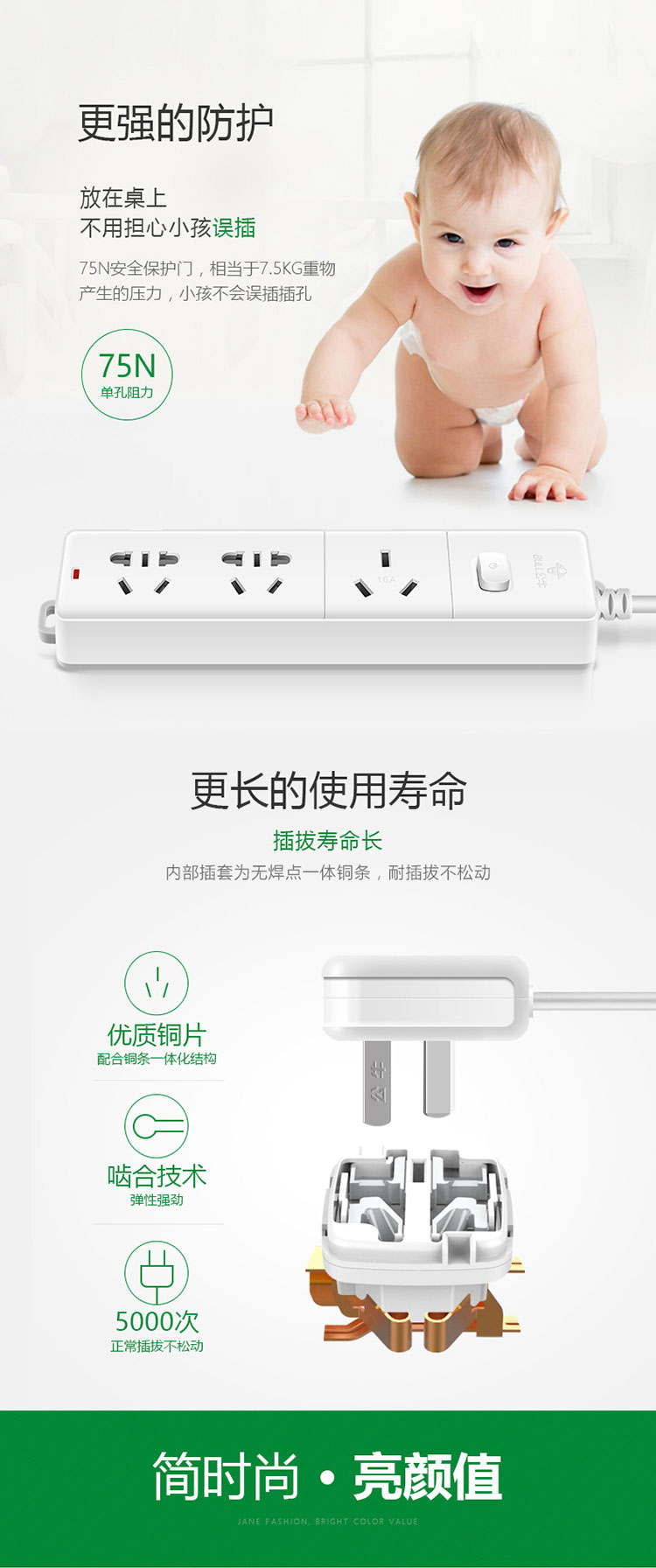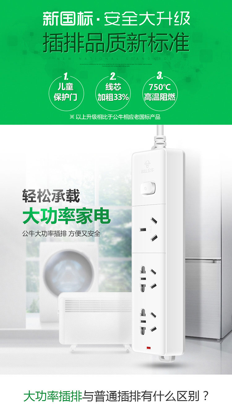 公牛插座 GN-406D 插座接線板大功率16A空調(diào)專用3孔 3位 3米單位:個