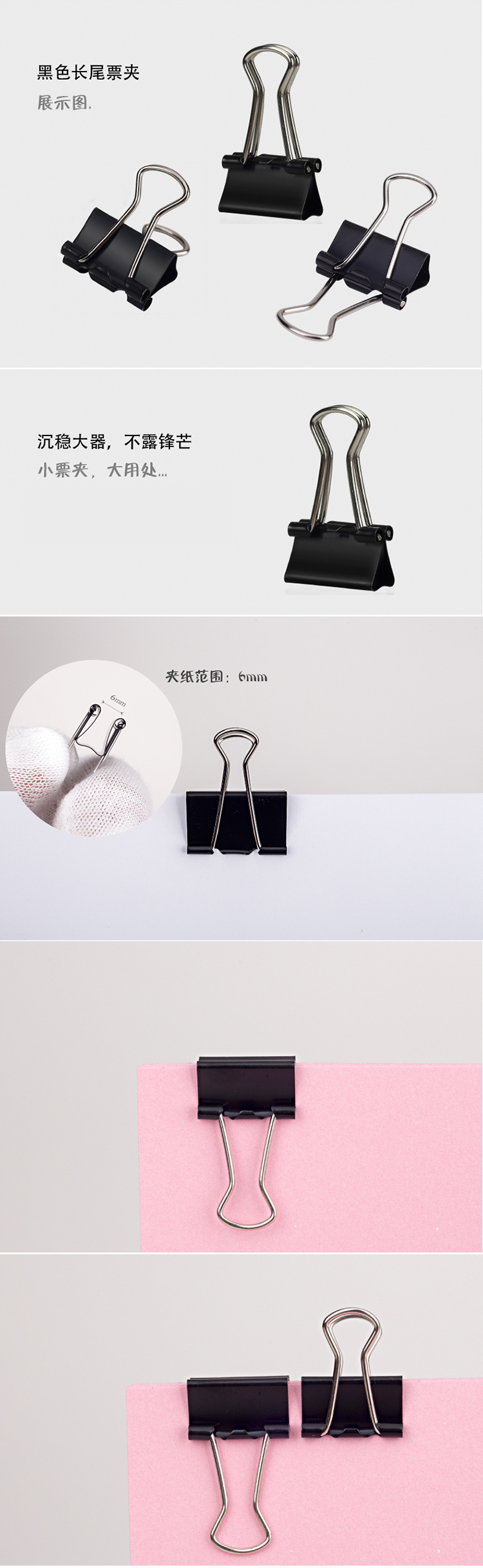 15mm黑色長尾夾票夾 小號金屬燕尾夾票據(jù)夾子 辦公用品 60只/筒