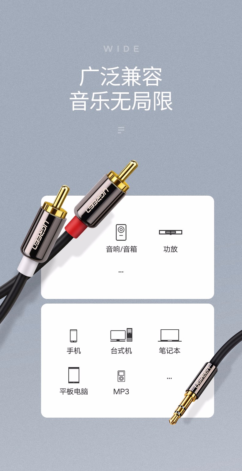 綠聯(lián) AV116 3.5mm音頻線一分二雙蓮花頭2RCA紅白公對公連接線 2米 黑色 單位:根