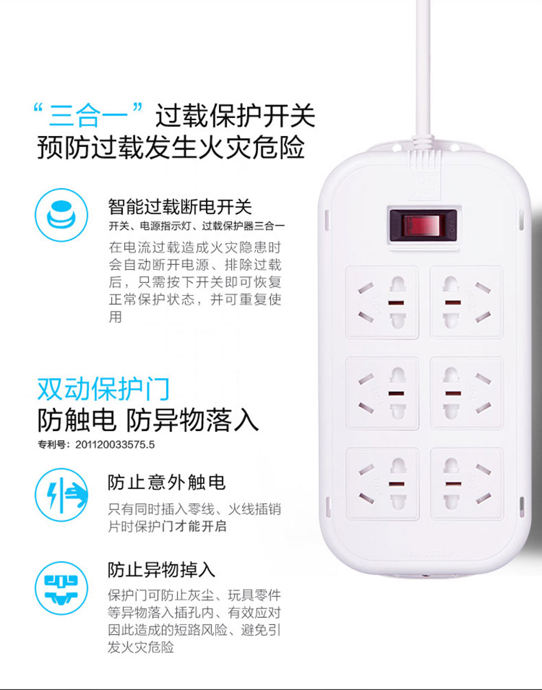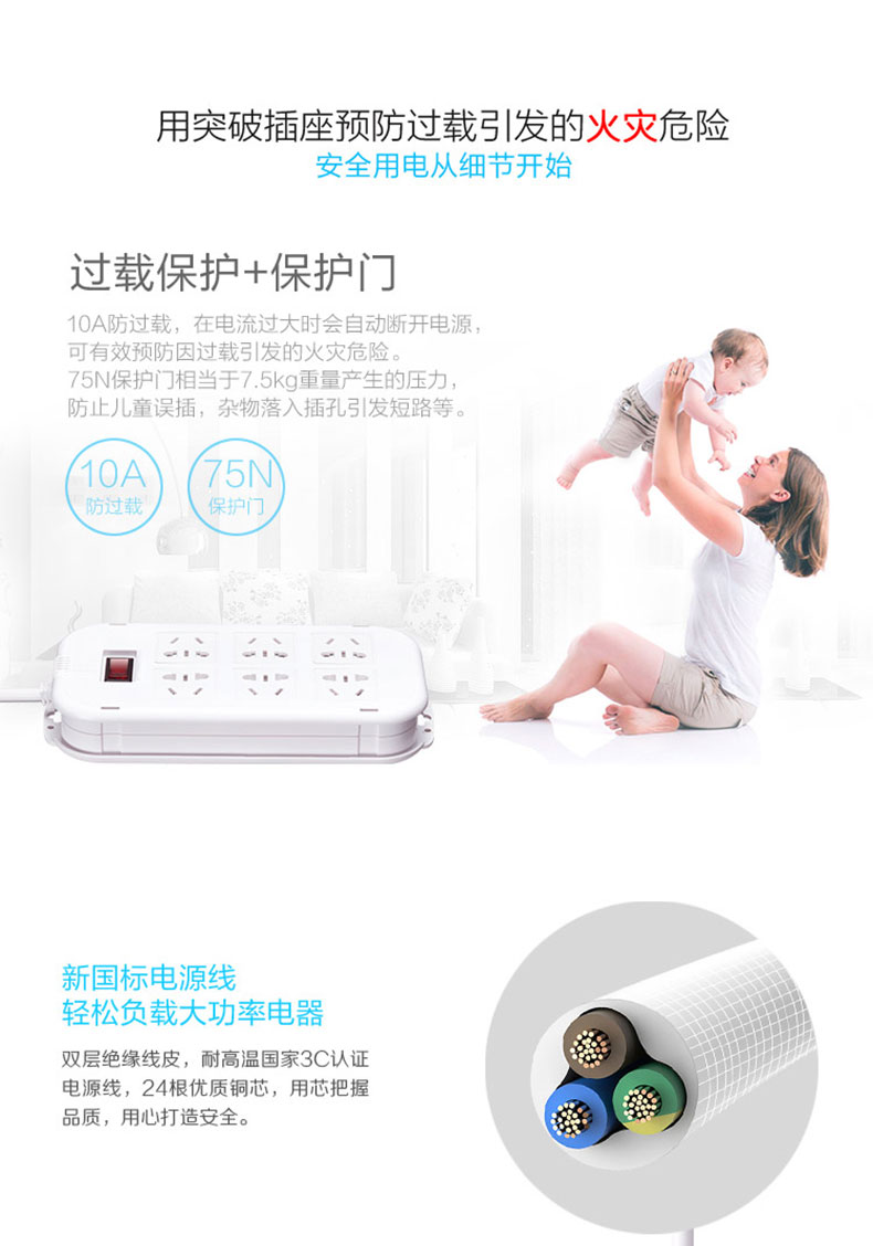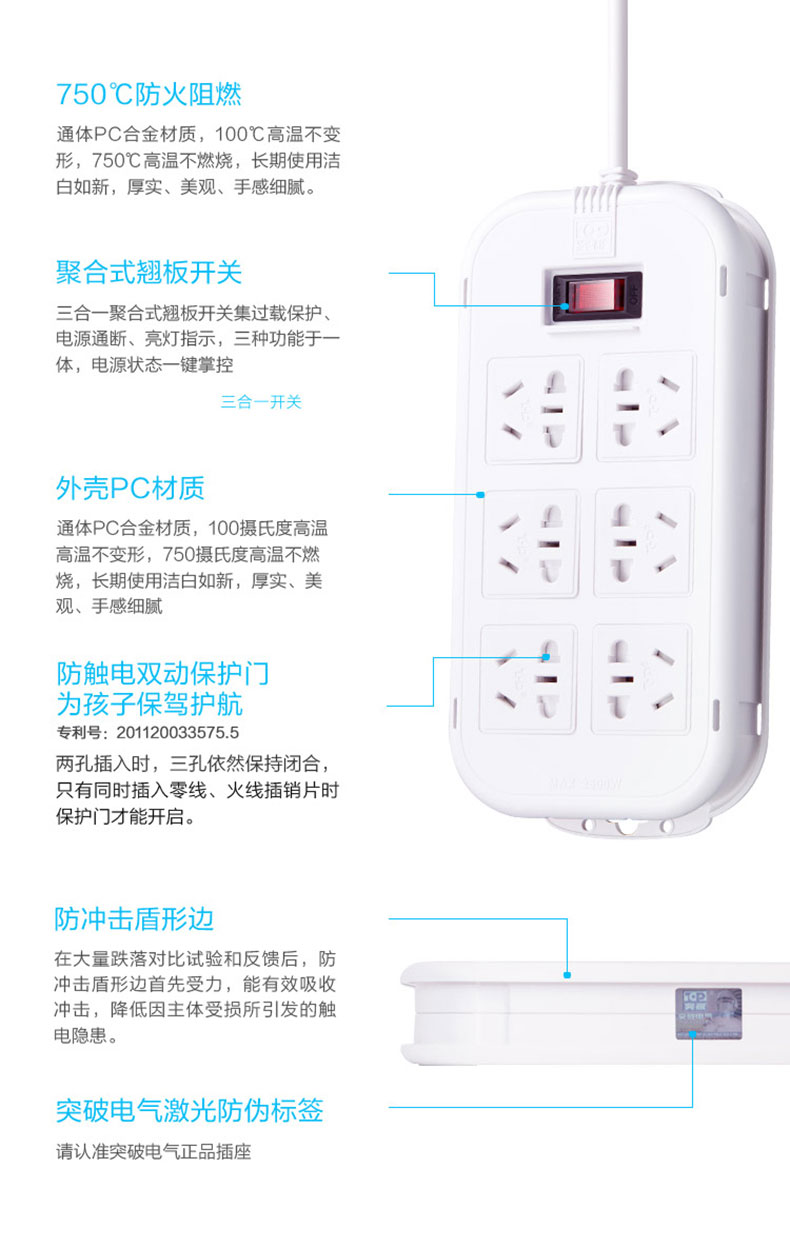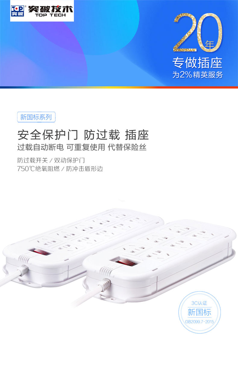 突破插座 T1KT 10米防過載總控雙動保護門插排 單位:個