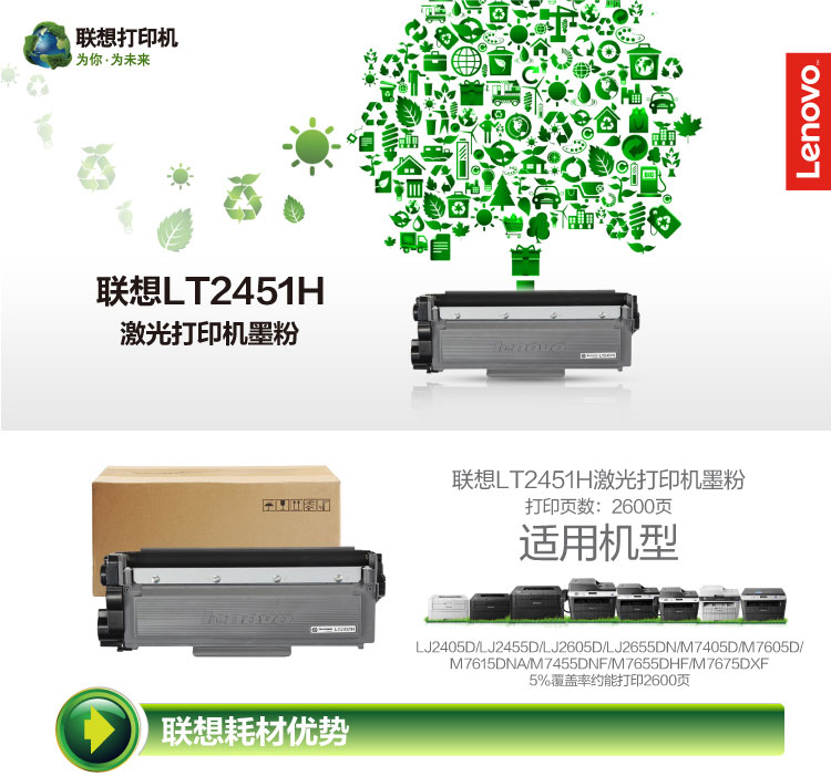 聯(lián)想粉盒 LT2451H 黑色 高容(適用LJ2605D/LJ2655DN/M7605D/M7615DNA/M7455DNF/7655DHF打印機)單位:支