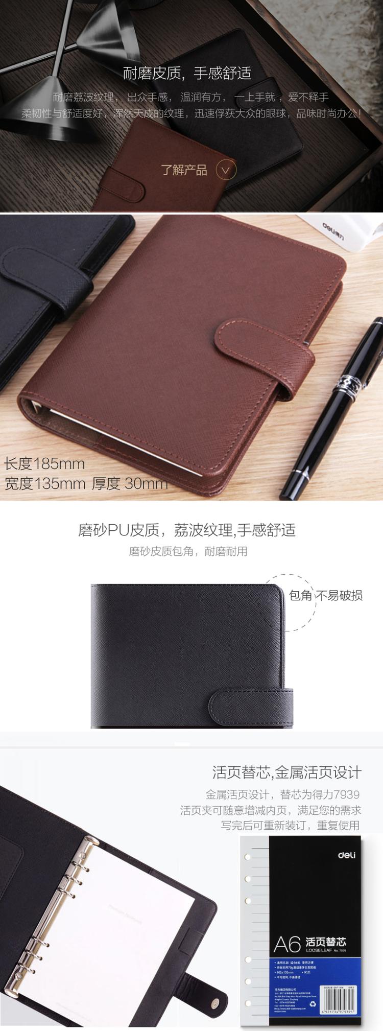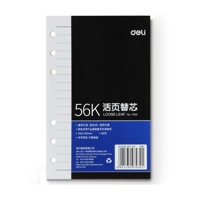 得力筆記本 7939 56K90張活頁(yè)筆記本替芯6孔 單位:本