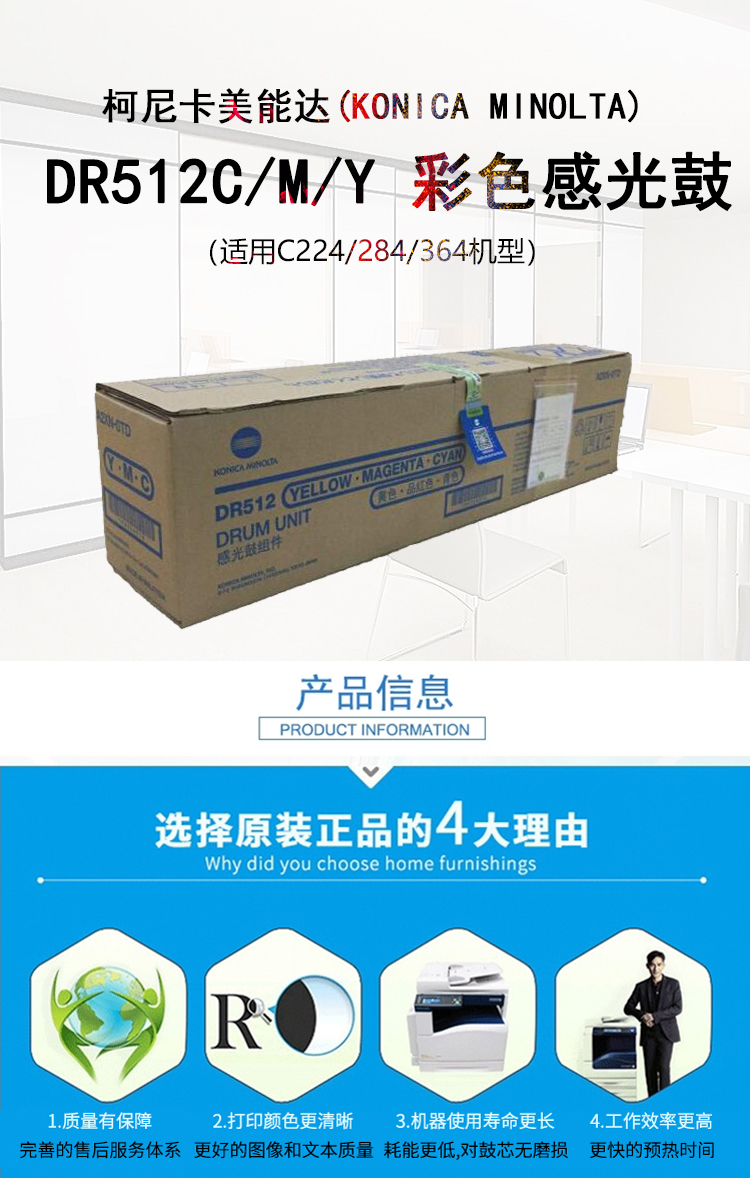 柯尼卡美能達(dá) DR512C 青色感光鼓 適用C221/C224/C281/C284/C454/C554等機(jī)型 單位:支