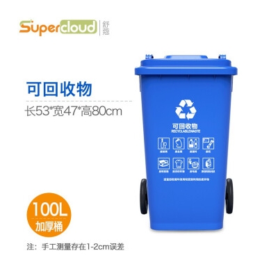 舒蔻 100L帶輪 藍(lán)色 可回收垃圾桶 物業(yè)環(huán)衛(wèi)垃圾分類商用帶蓋分類垃圾桶果皮箱 單個裝