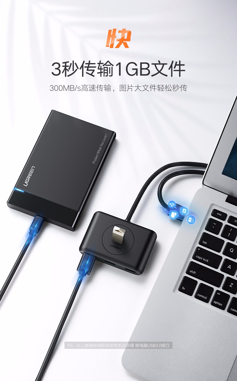 綠聯(lián)分線器 CR113 USB3.0一拖四高速type-c口擴(kuò)展HUB【USB款】 1.5米 白色 單位:個(gè)
