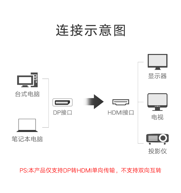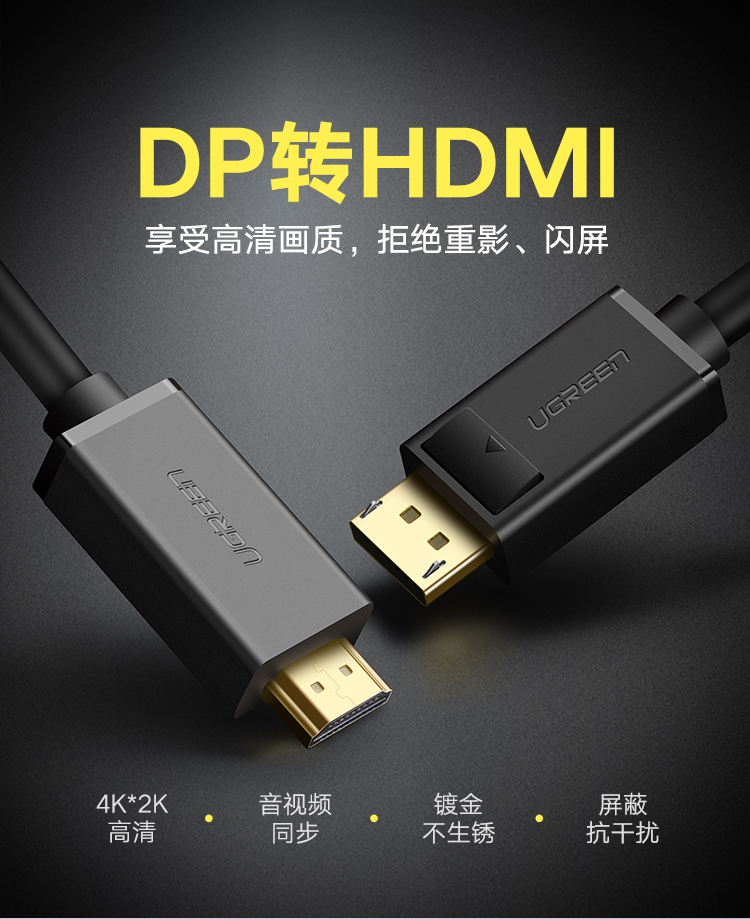 綠聯(lián) DP101 DP轉(zhuǎn)HDMI轉(zhuǎn)接線 4K高清連接線 DP轉(zhuǎn)hdmi公對公 電腦電視視頻轉(zhuǎn)換線 2米 單個裝