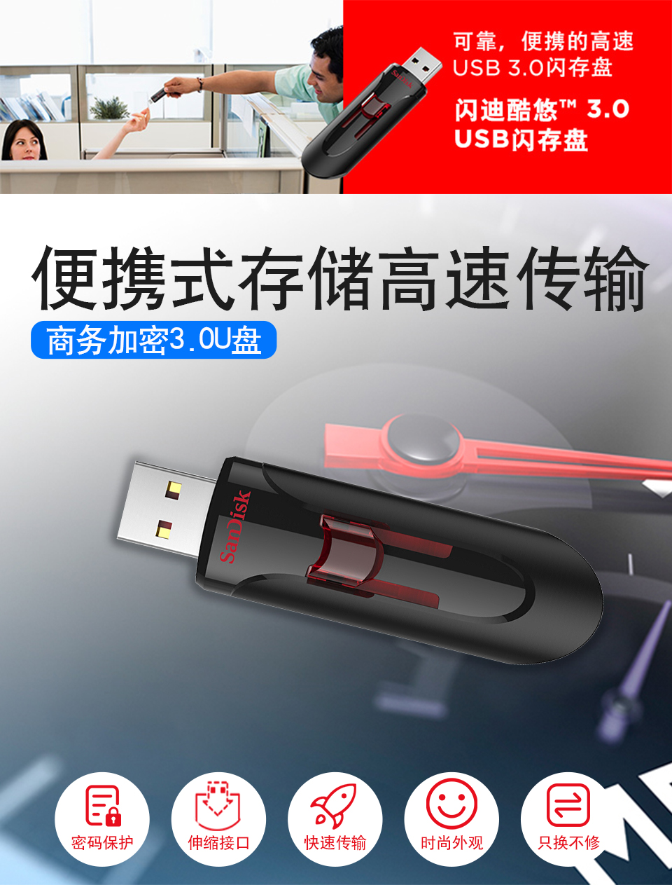 閃迪U盤 CZ600 USB3.0 64g 單位:個